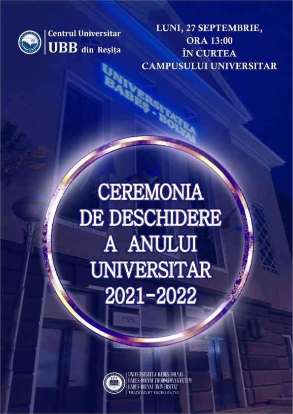 Luni, 27 septembrie 2021, ora 13, Centrul Universitar UBB din Resița organizează ceremonia de deschidere a noului an universitar 2021-2022.