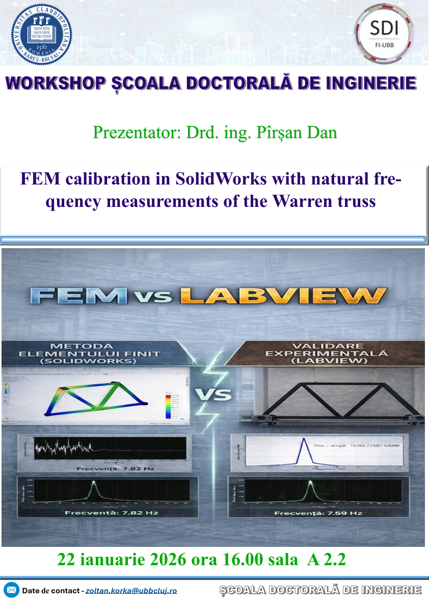 Școala Doctorală de Inginerie (SDI) continuă seria întâlnirilor de diseminare a rezultatelor cercetărilor întreprinse în ultima perioadă.